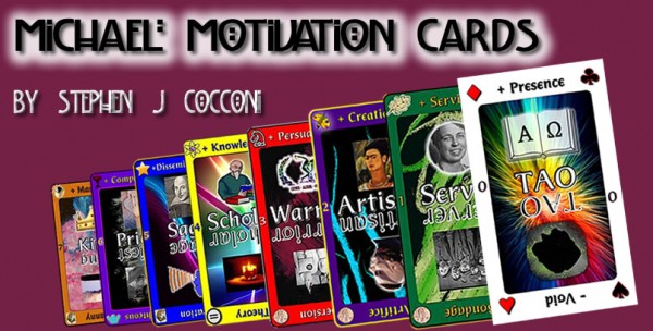 The Deck is a feedback tool providing a universal vocabulary for descriptive commentary about the issues, people, relationships, or circumstances in the questioners life. The tactile and visual formulation of this medium anchors the information in a more kinesthetic way, affording you the opportunity to re-examine exact Card concepts or layouts, for later study and contemplation. The source of the Michael Motivation Cards™ deck is the same Michael Entity from the Causal Plane which introduced the concepts of: Overleaves, Soul Ages, and TAO’s Cosmology of Creation presented in the MT. This Deck is a distillation extracted from those original messages with augmentation from several complementary sources. It is the first tangible tool to offer a user direct interaction with Michael’s energy through the catalyst of the Cards. Thus, you may expect the Cards’ tenor to relay a Masculine-Intellectual-Warrior-King tone in the written responses.
